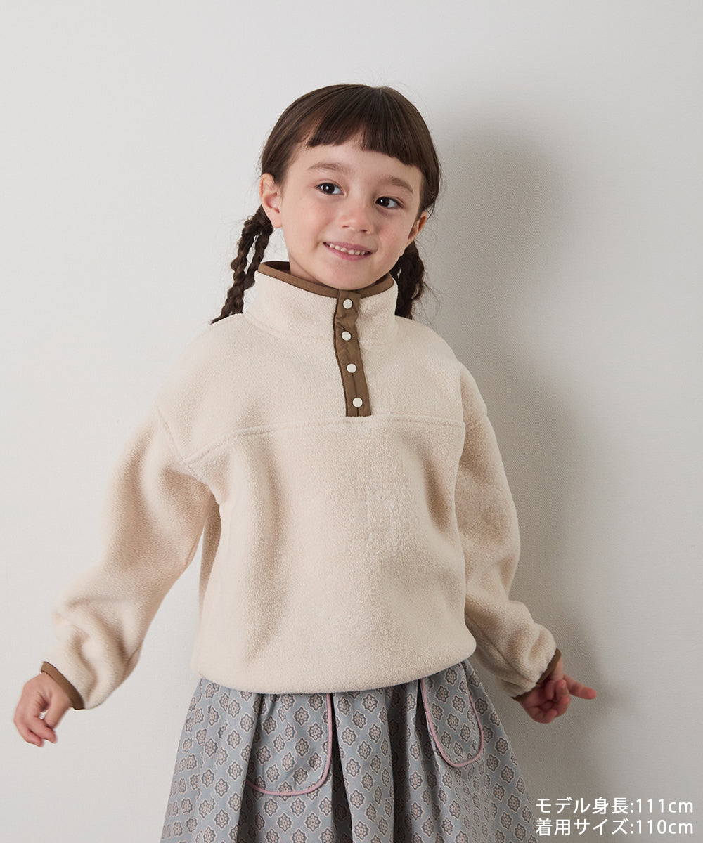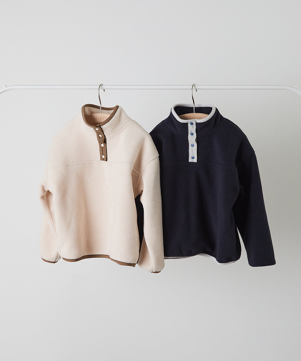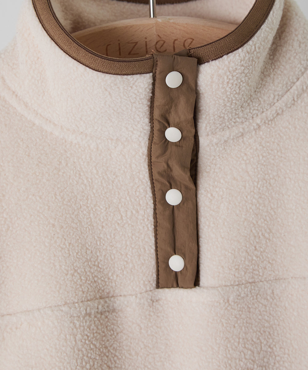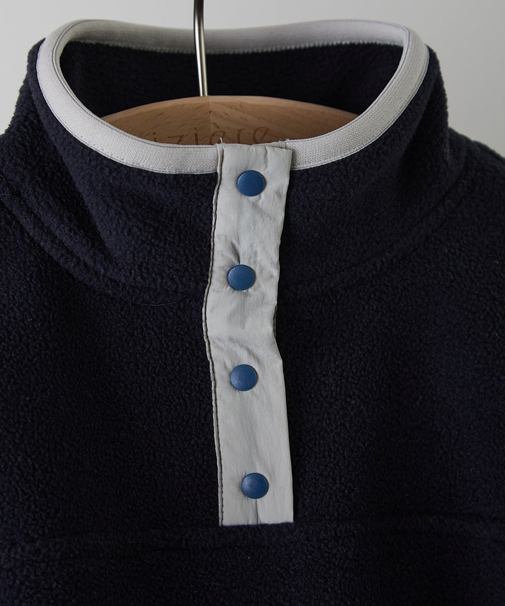 スナップボタンバイカラーフリースプルオーバー