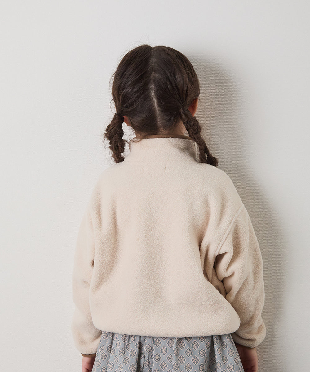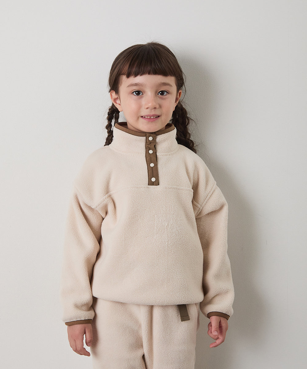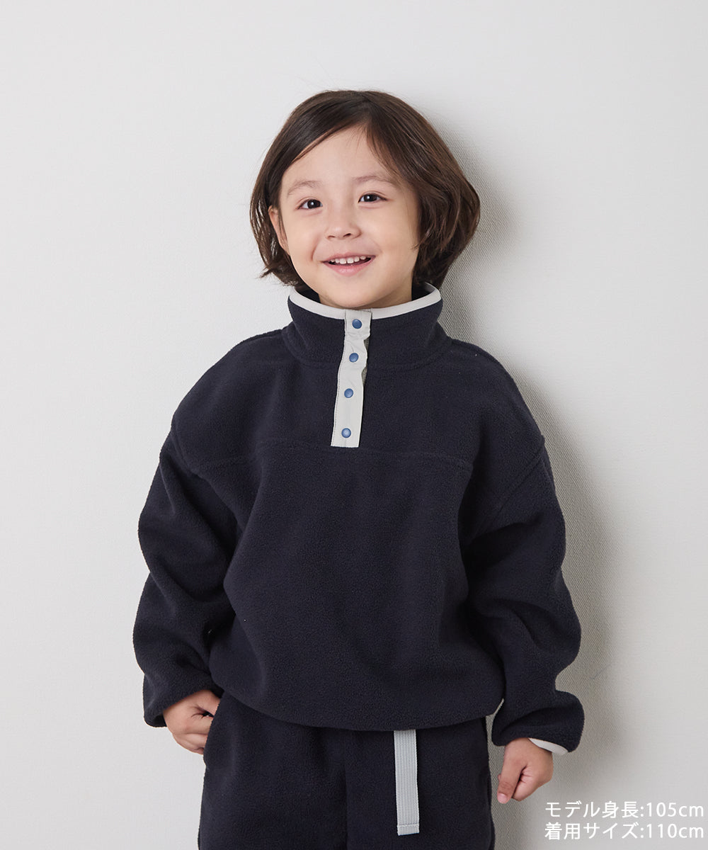 スナップボタンバイカラーフリースプルオーバー