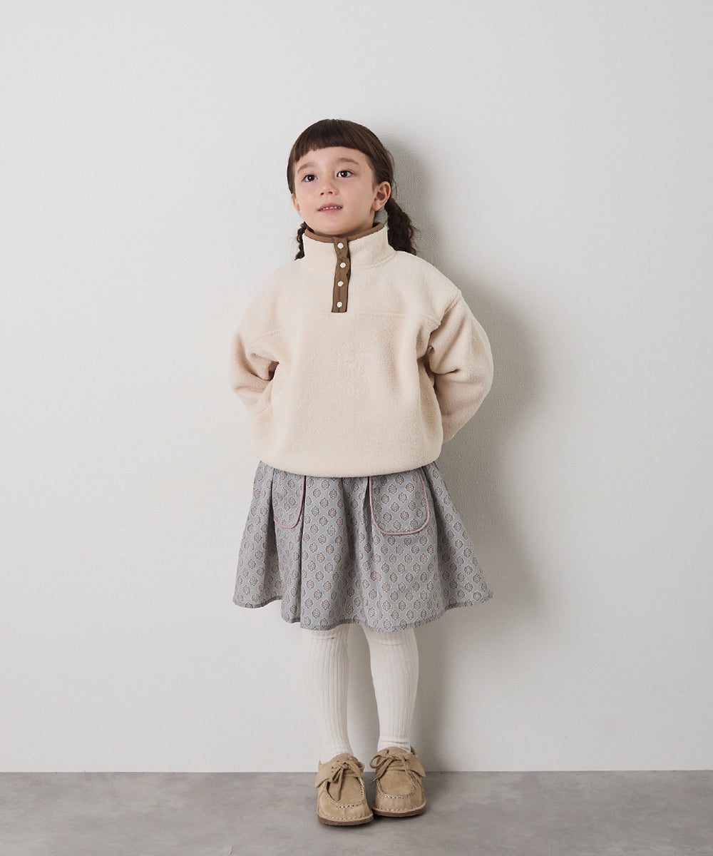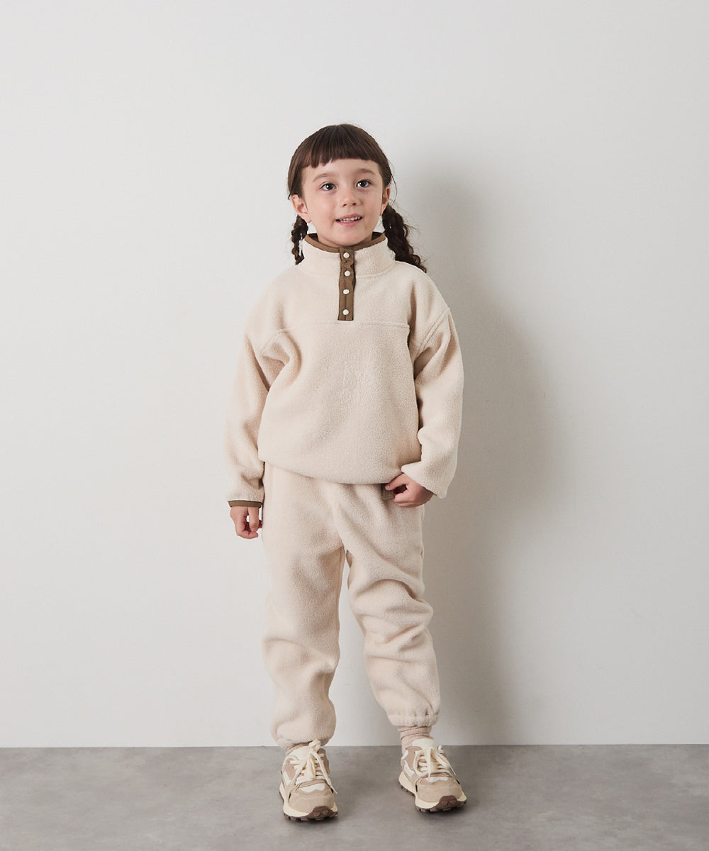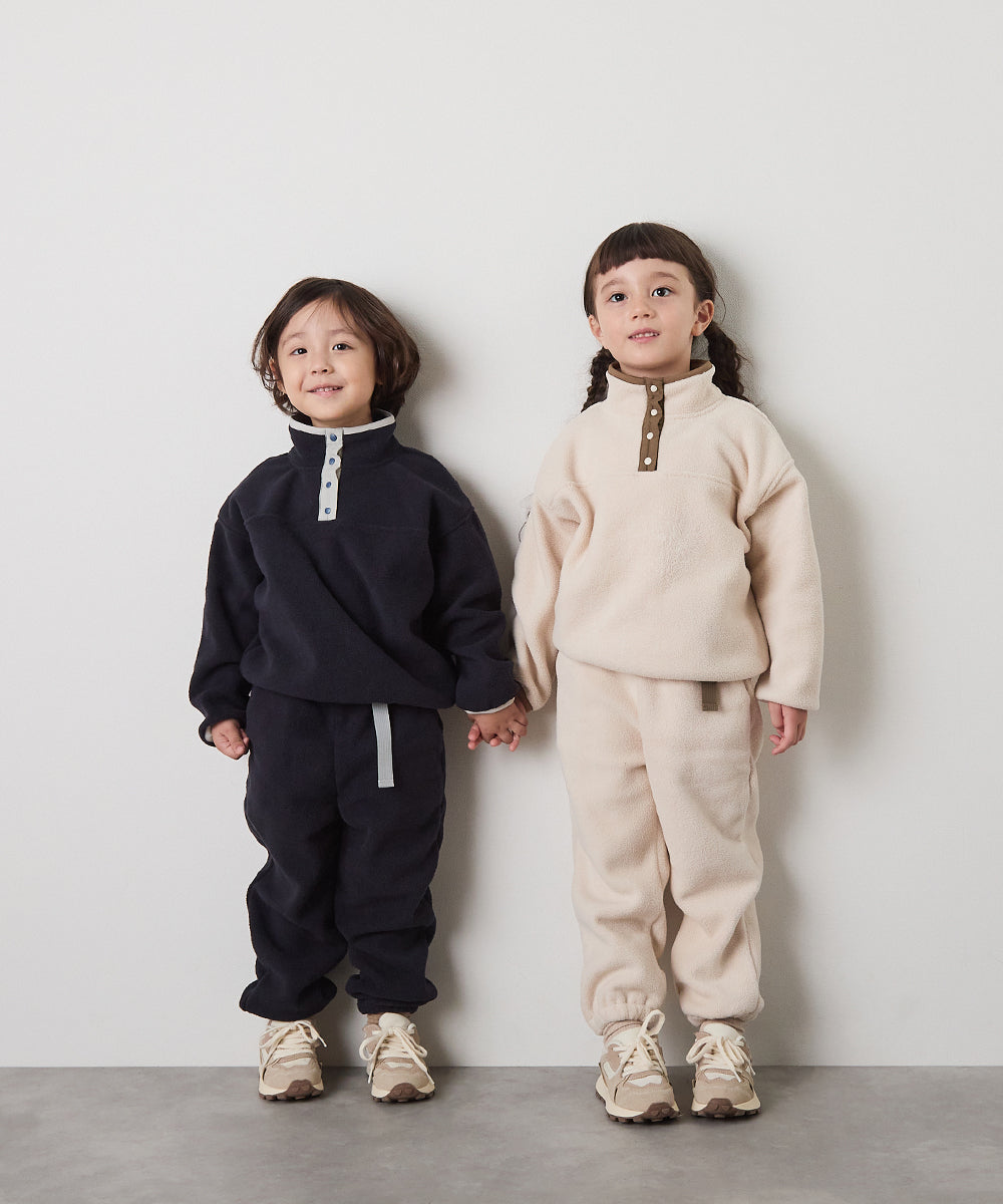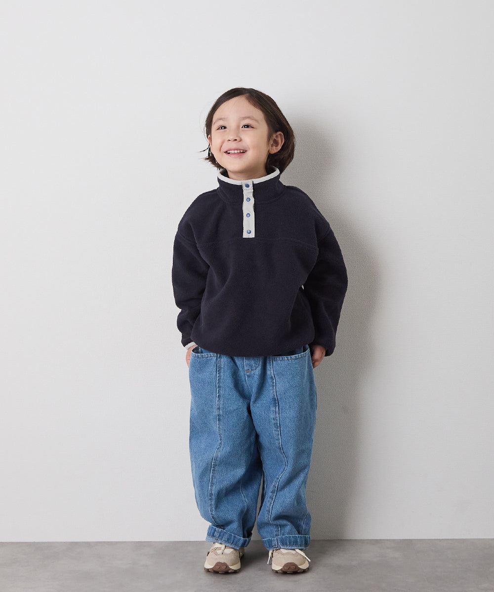 スナップボタンバイカラーフリースプルオーバー