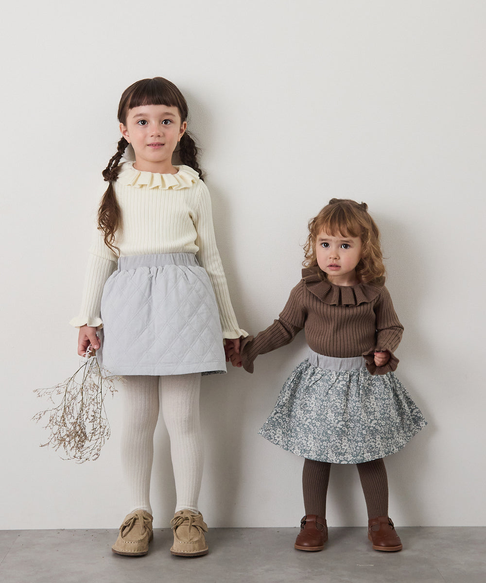 キルティング&花柄プリントリバーシブルスカート