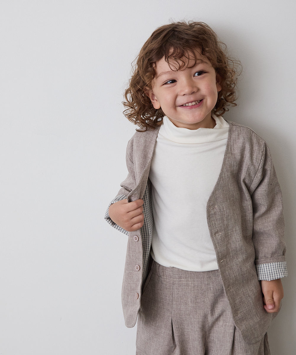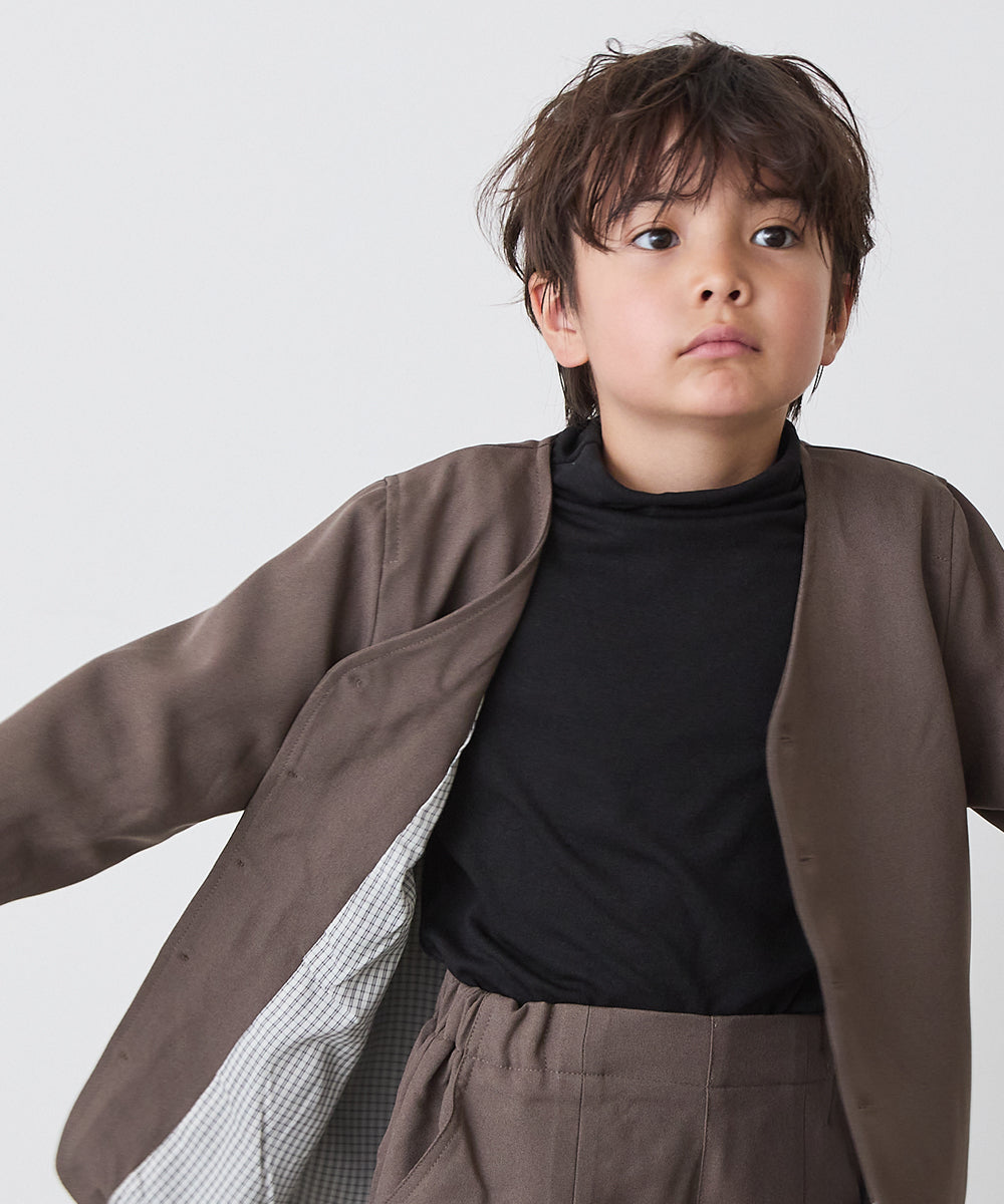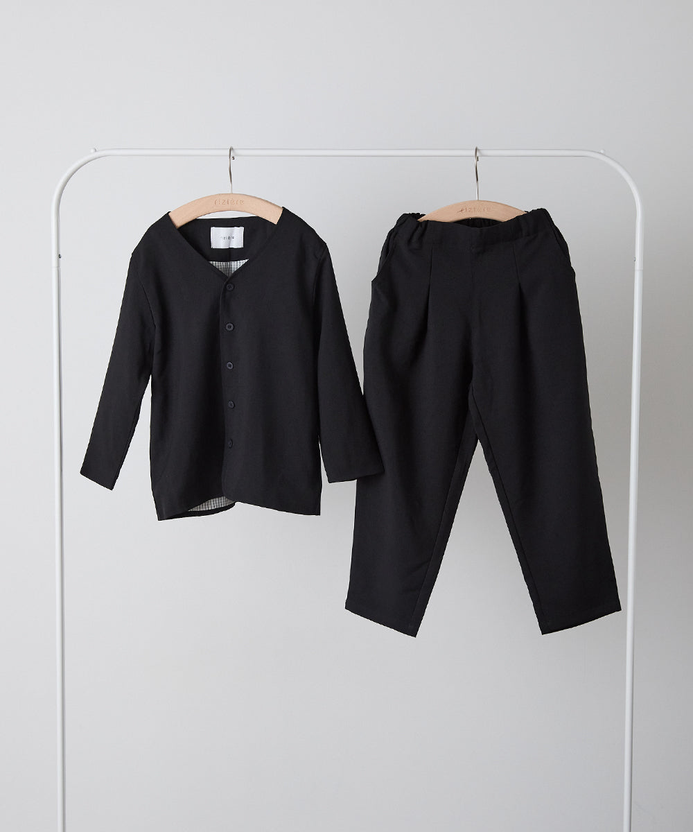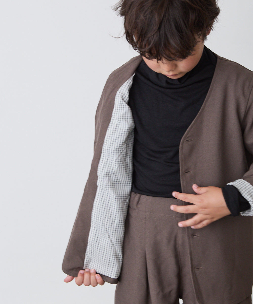 シングルノーカラージャケットセットアップ(裏地チェック)