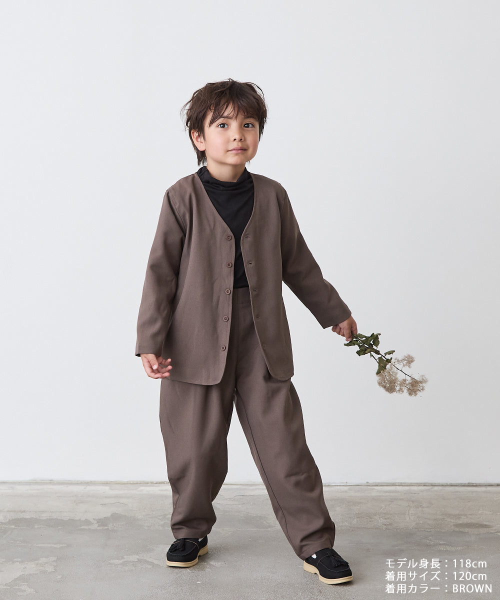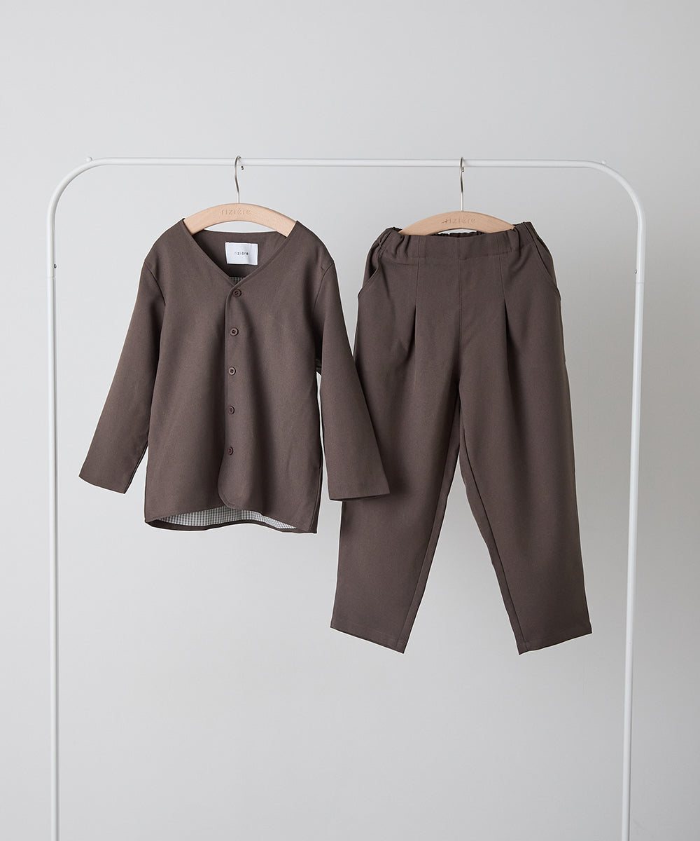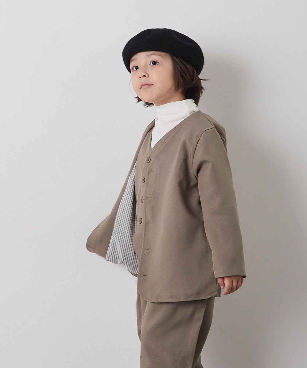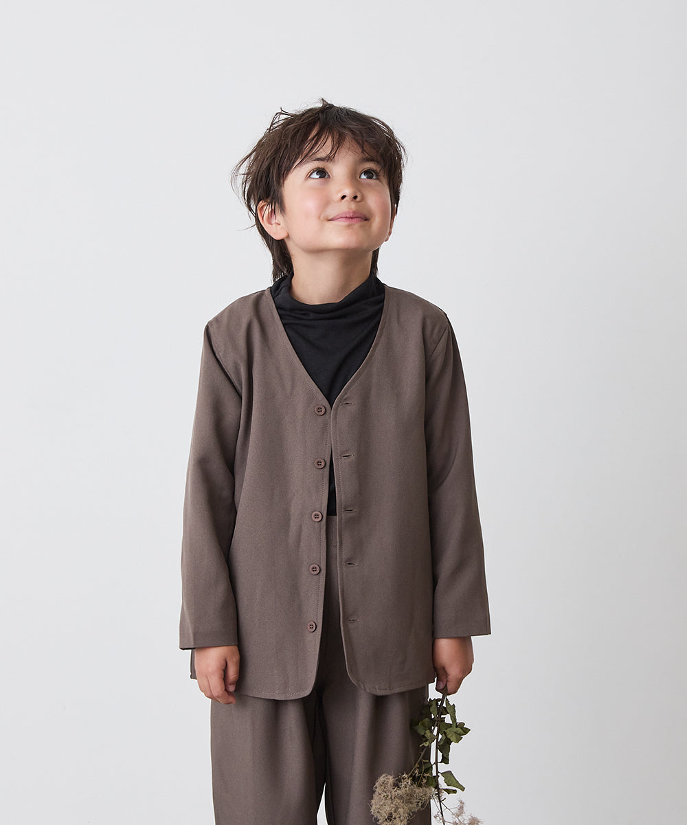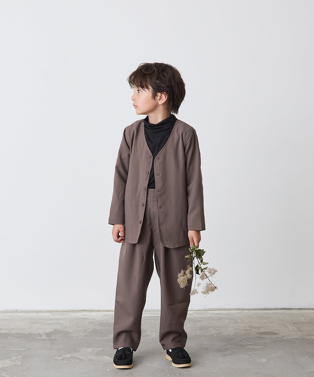 シングルノーカラージャケットセットアップ(裏地チェック)