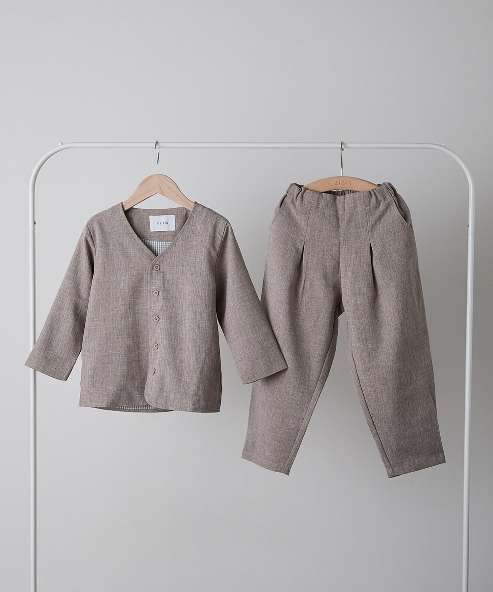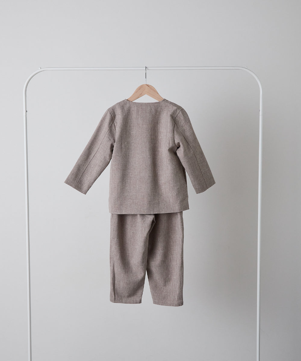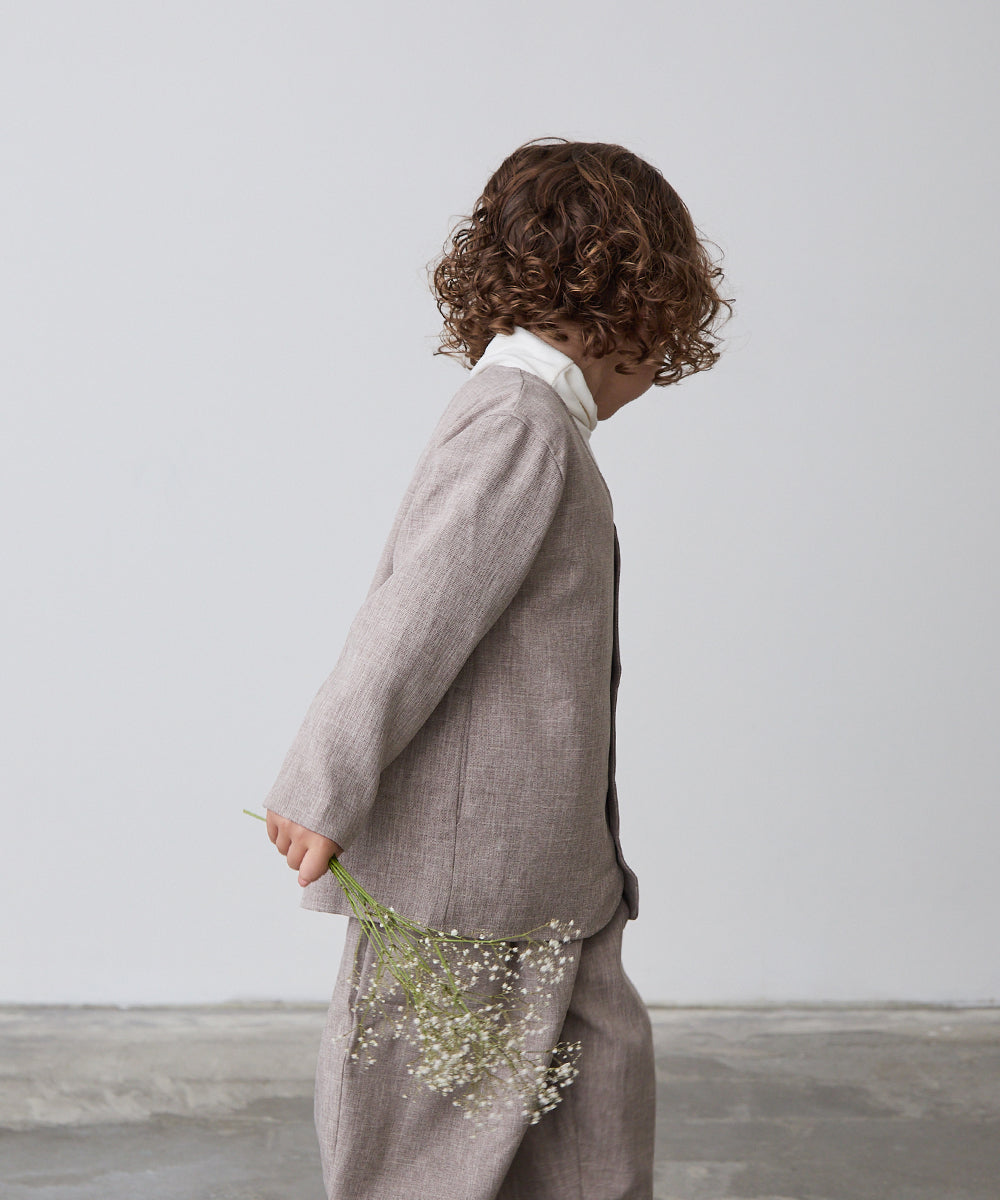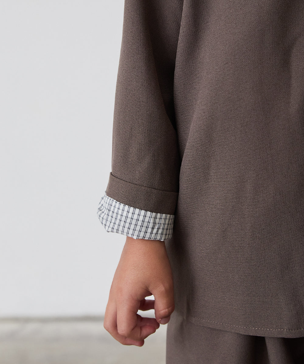 シングルノーカラージャケットセットアップ(裏地チェック)