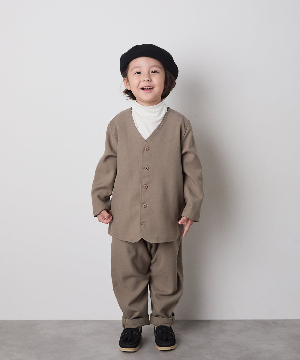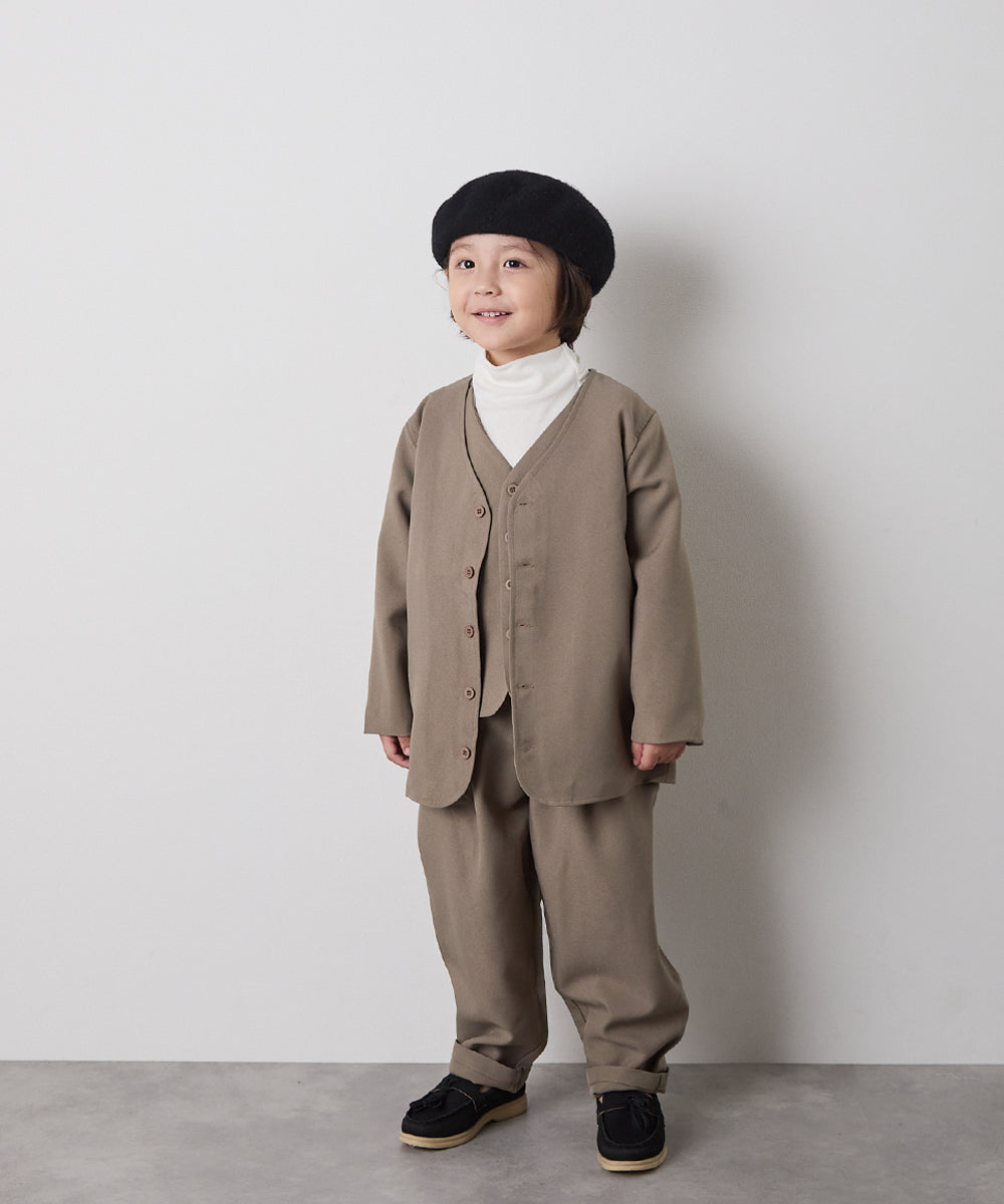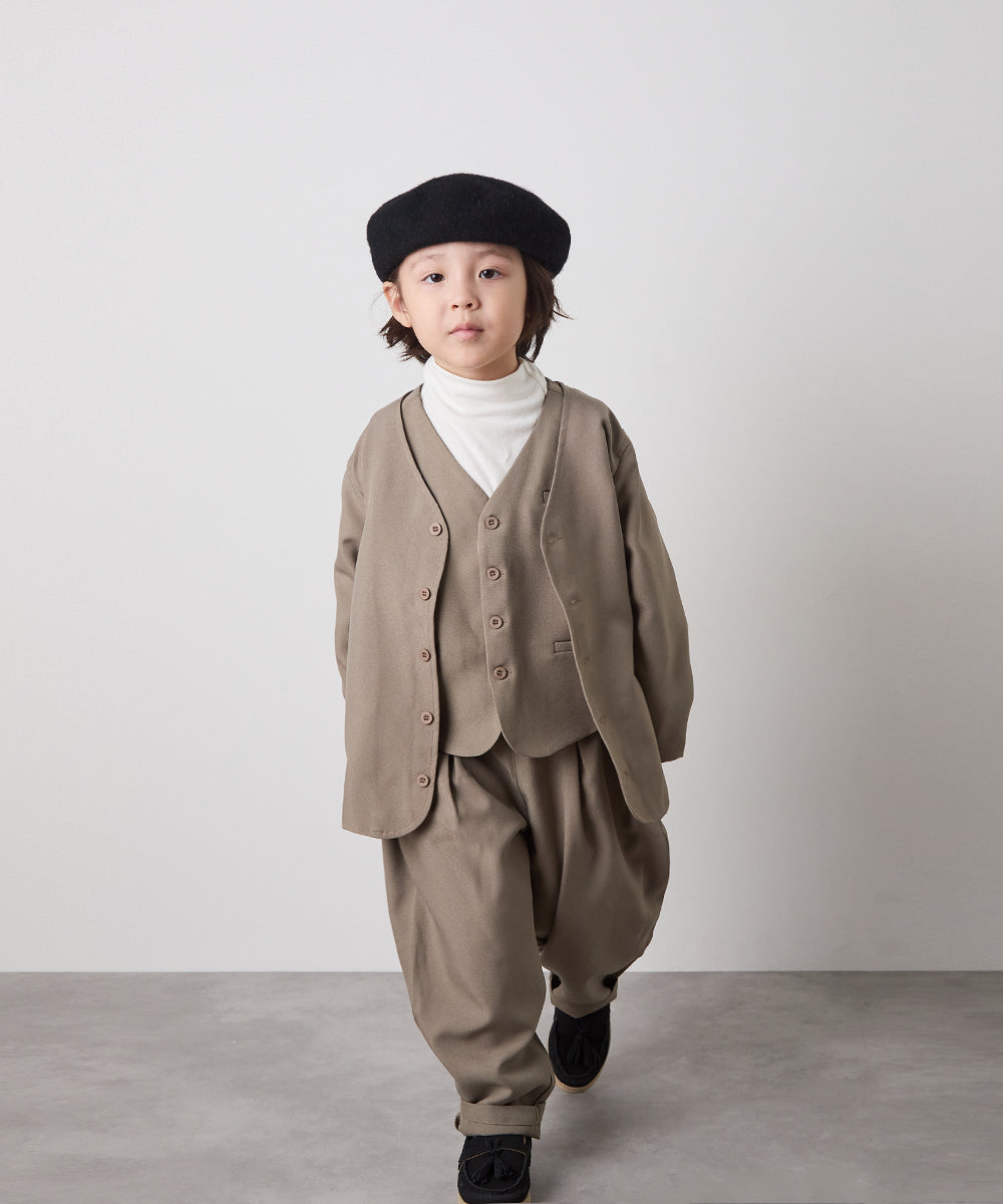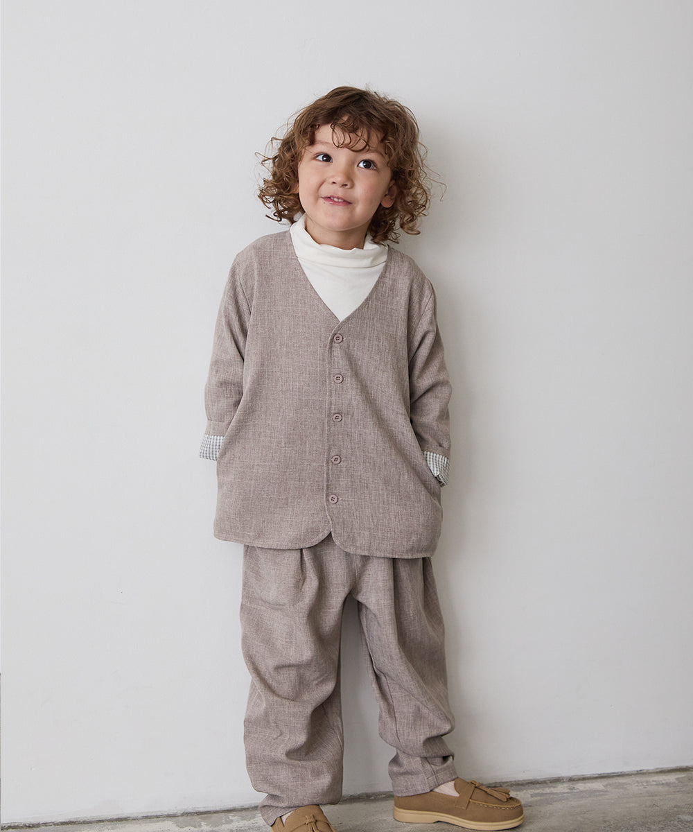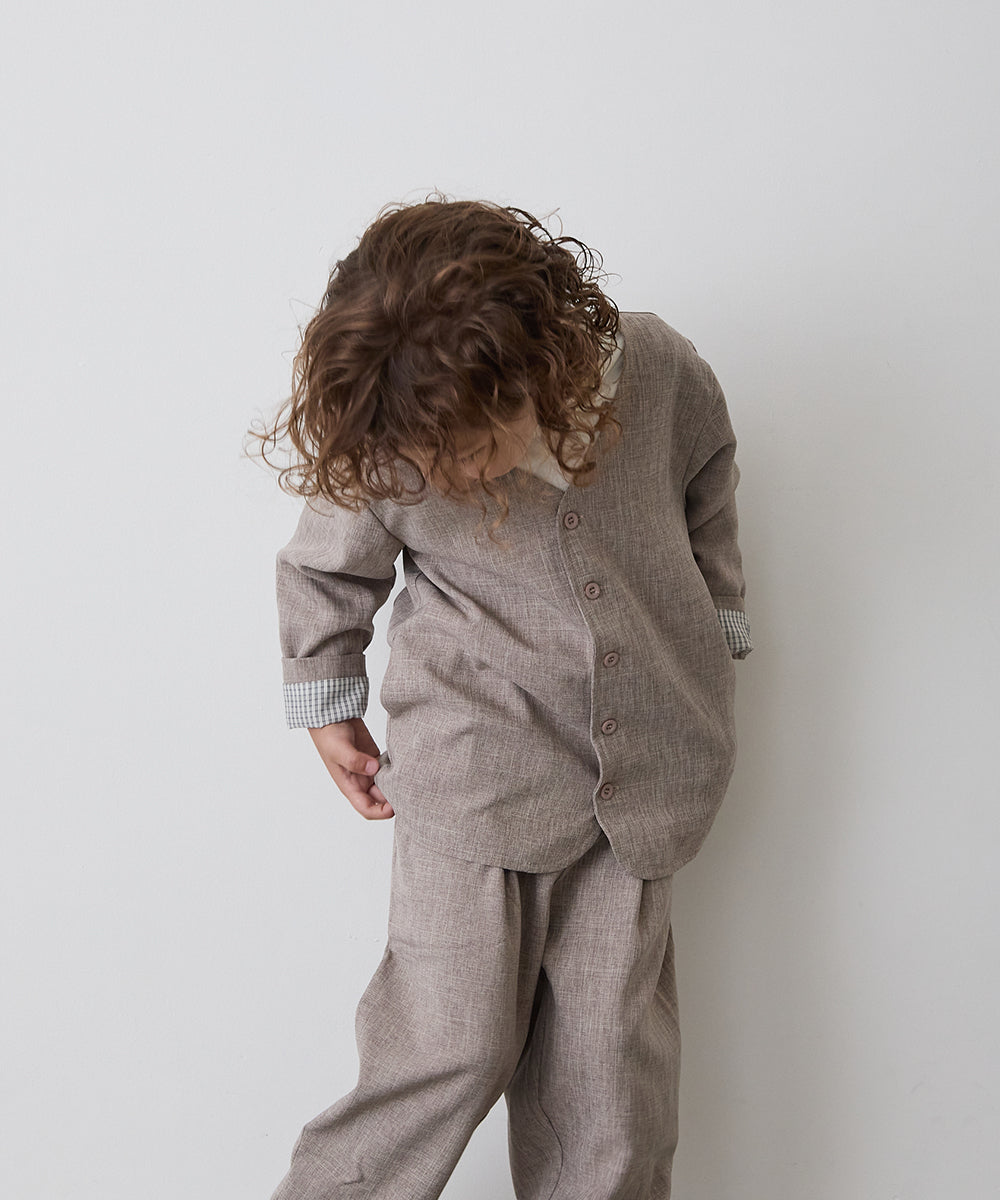 シングルノーカラージャケットセットアップ(裏地チェック)