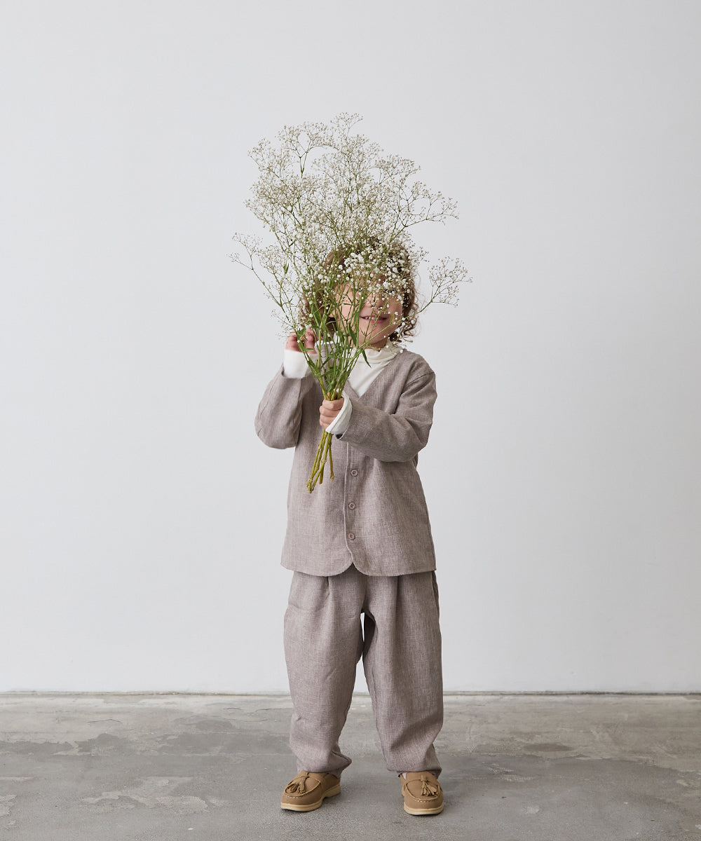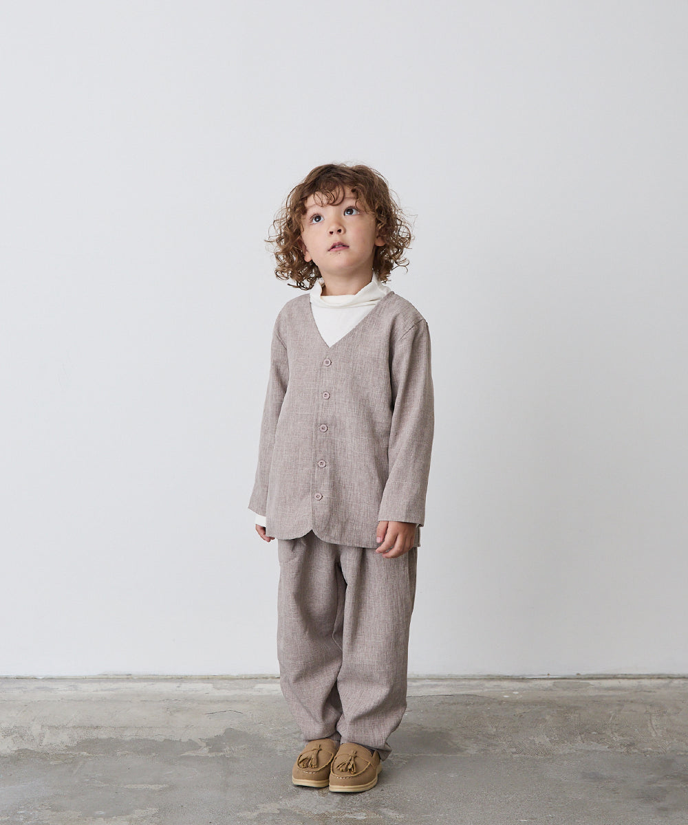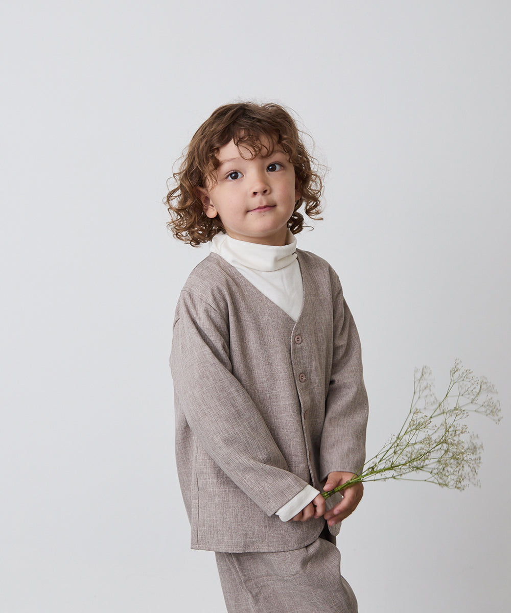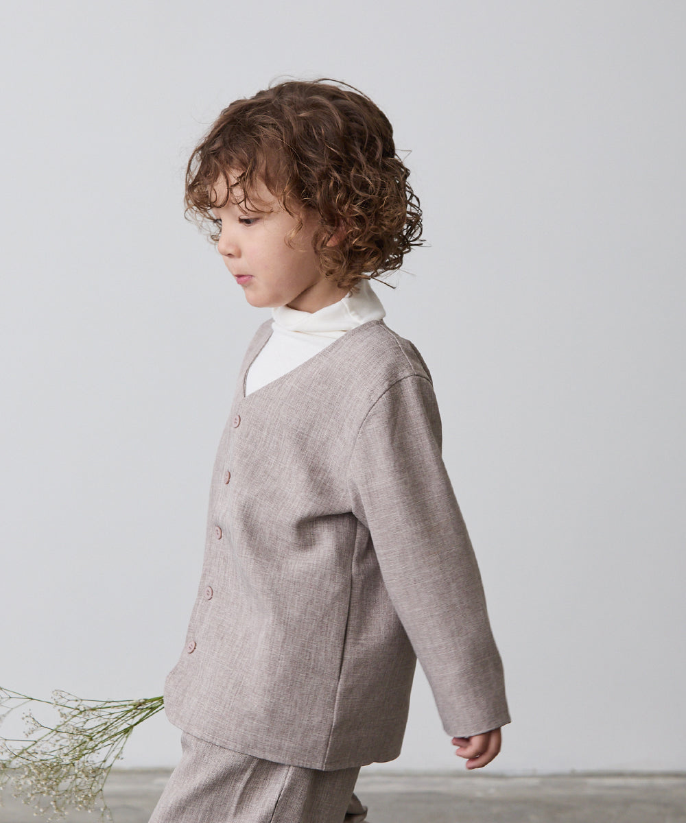 シングルノーカラージャケットセットアップ(裏地チェック)