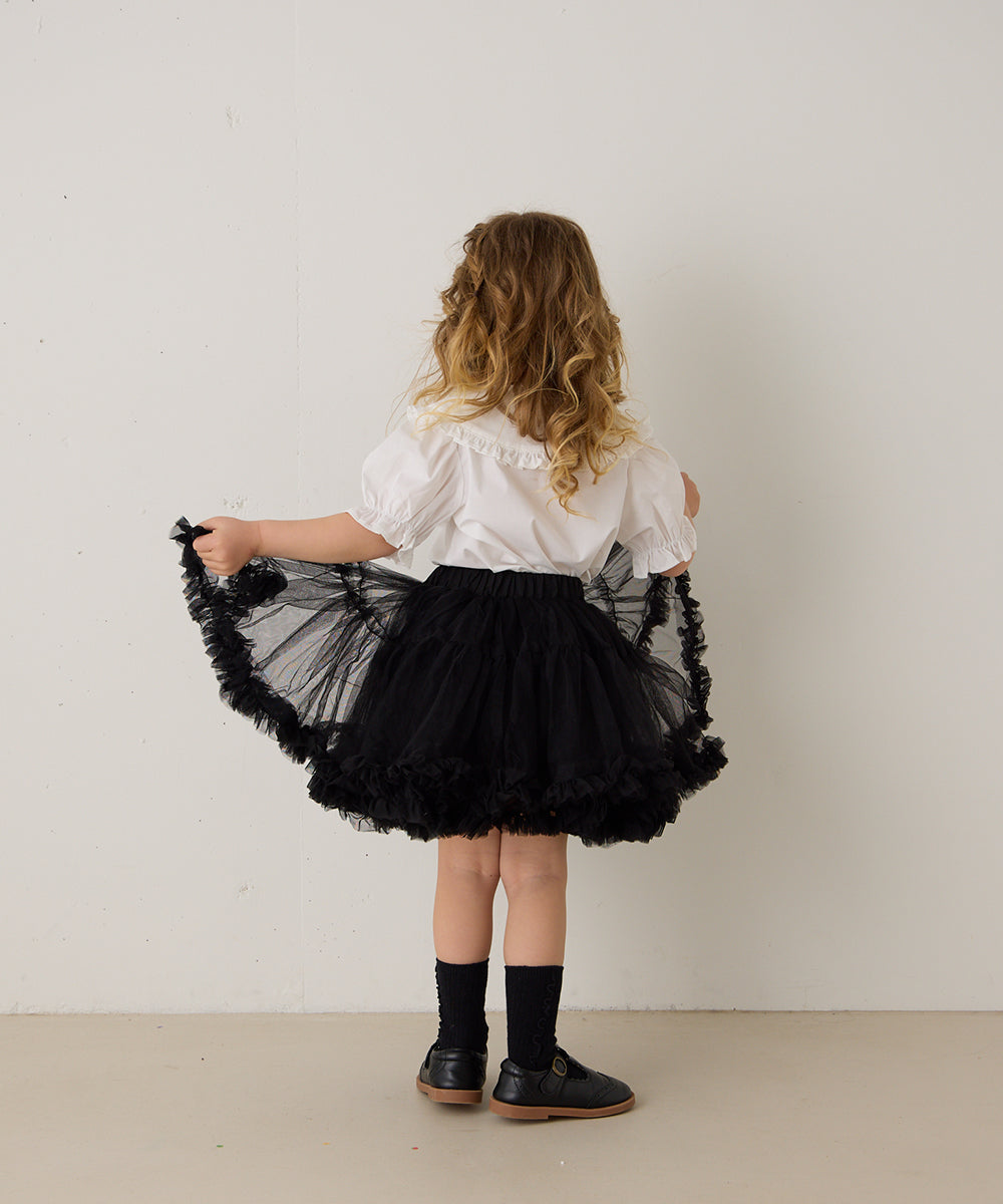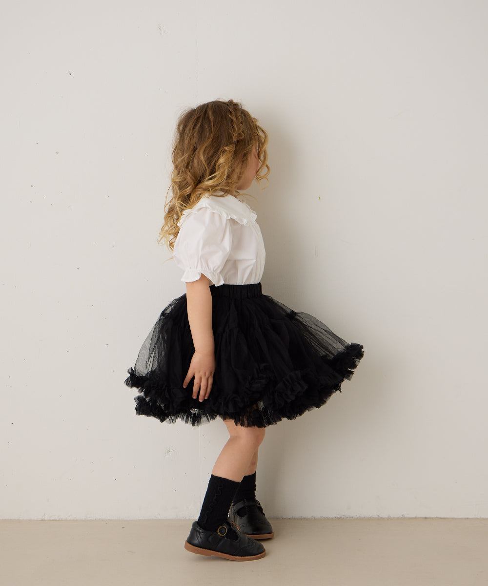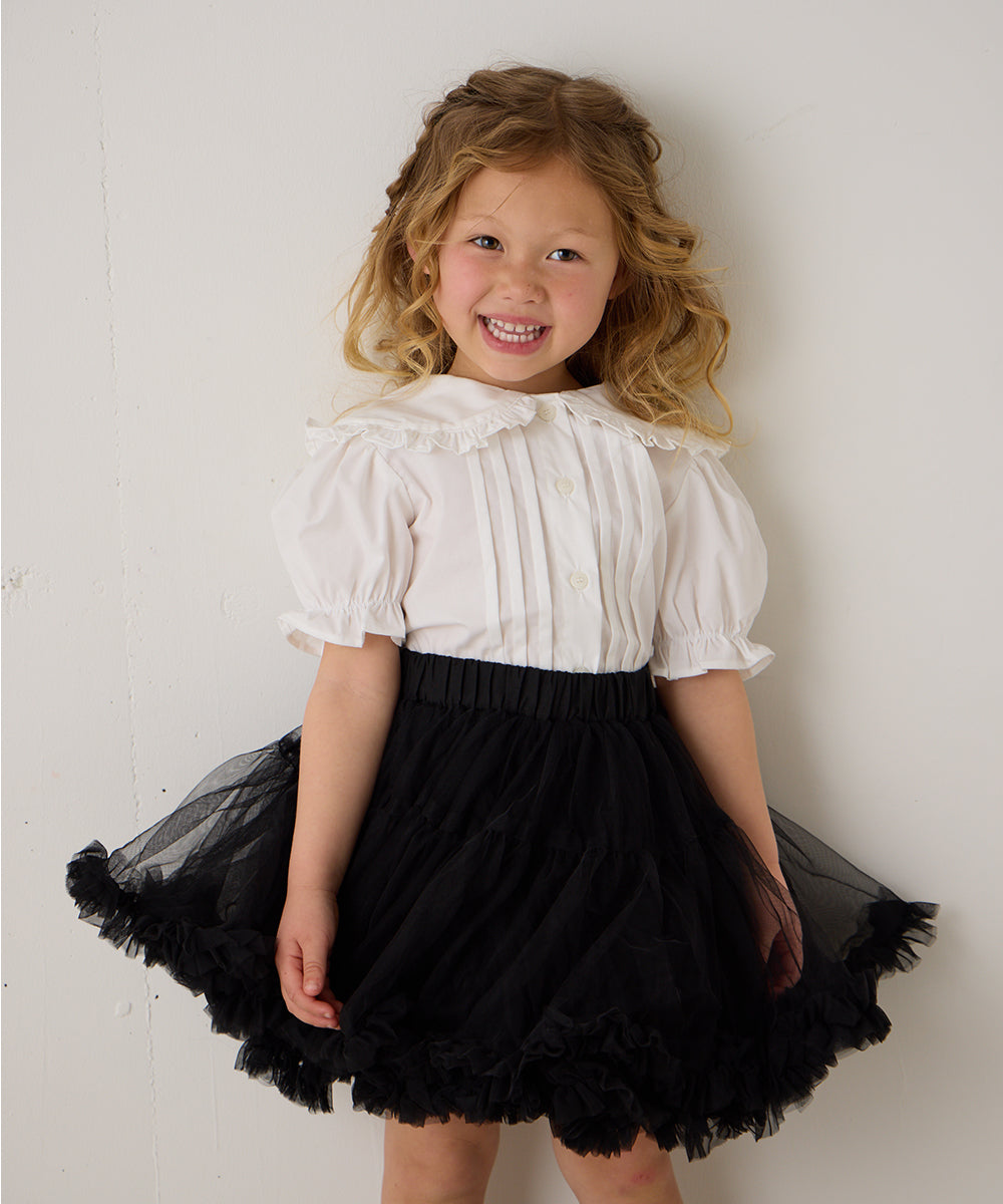 程よいボリュームのパフスリーブと、袖口のさりげないフリルが子どもらしい可愛らしさをプラス。