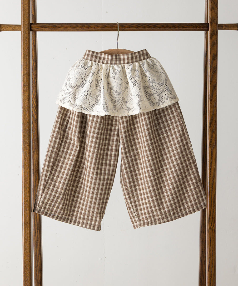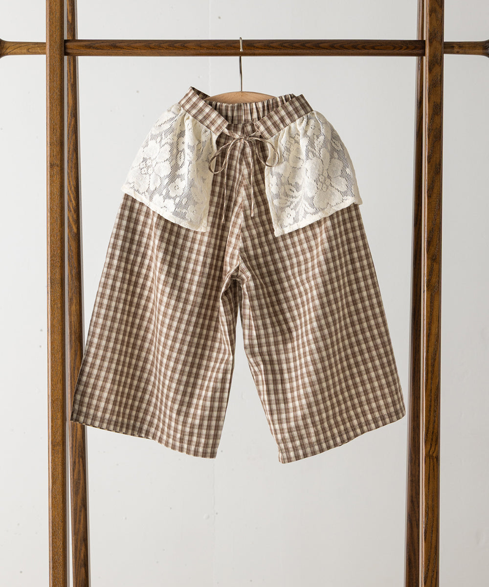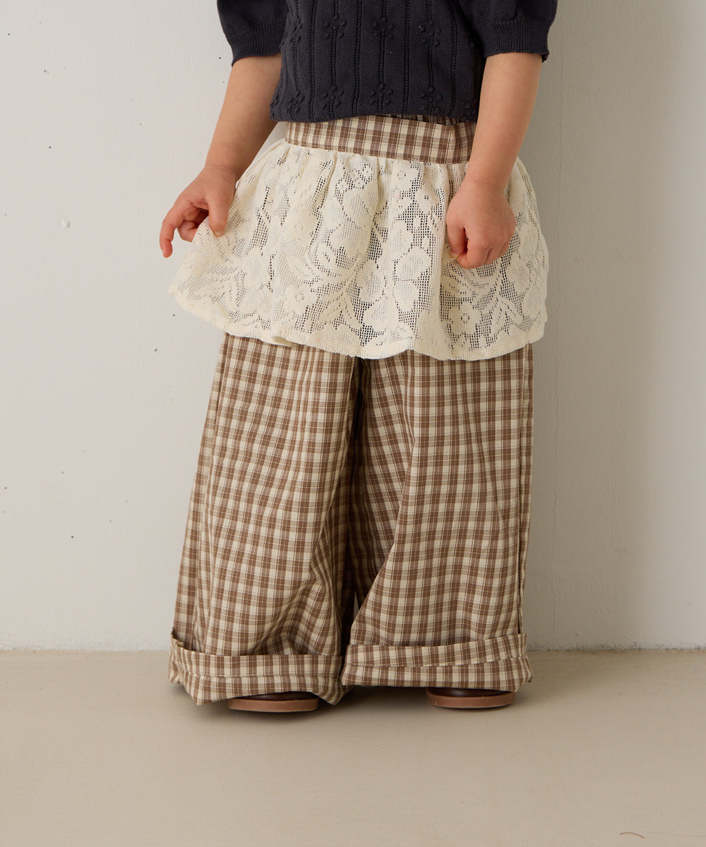 レースエプロン付きチェックパンツ