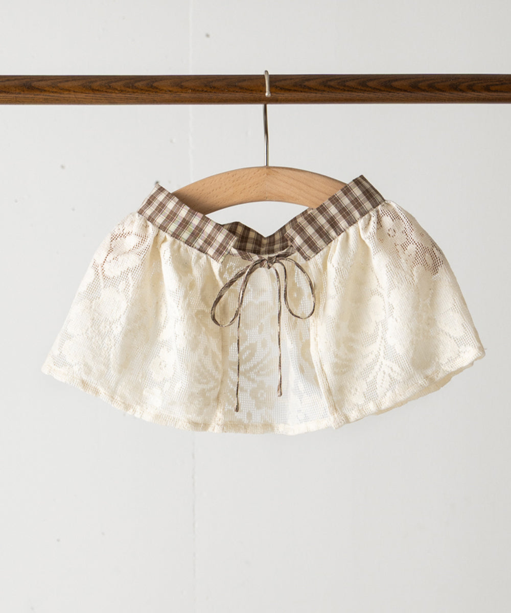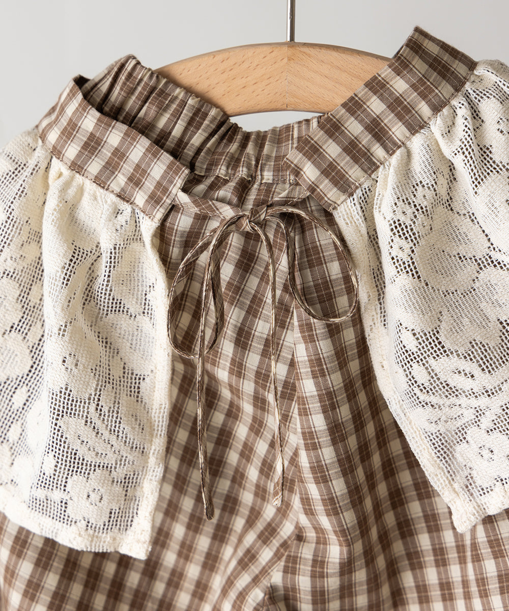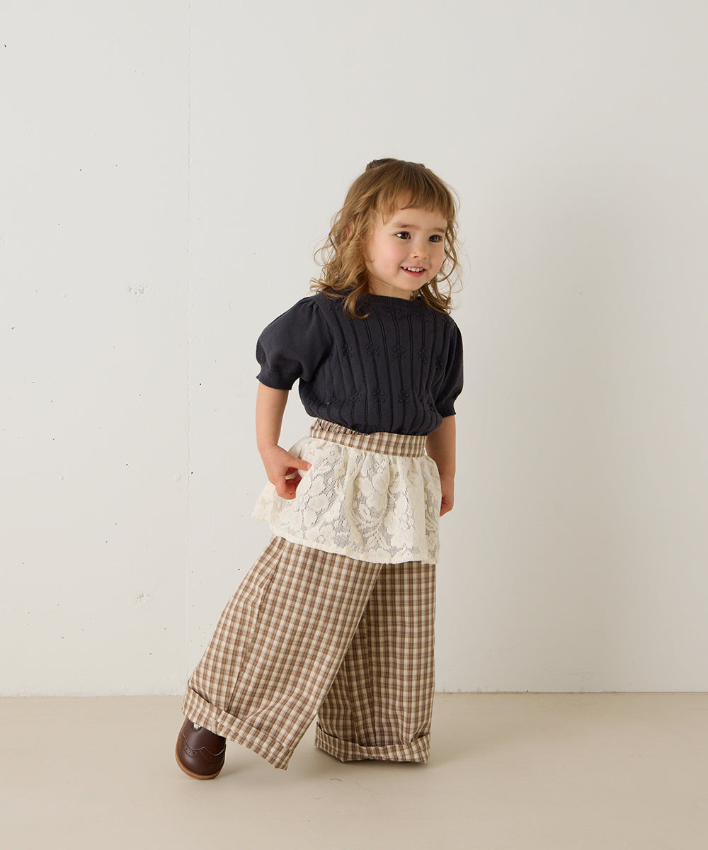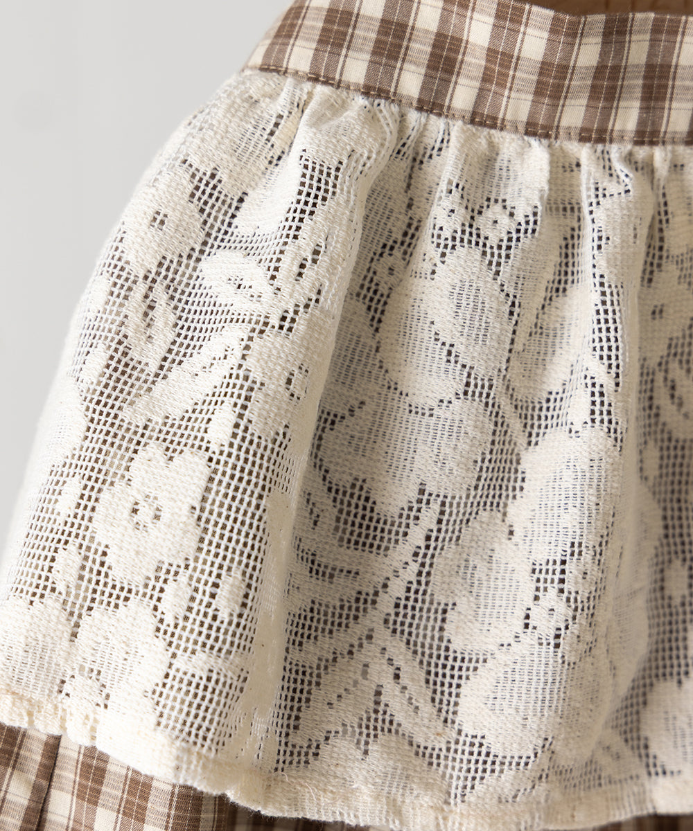 レースエプロン付きチェックパンツ