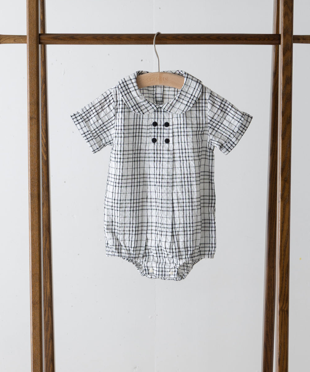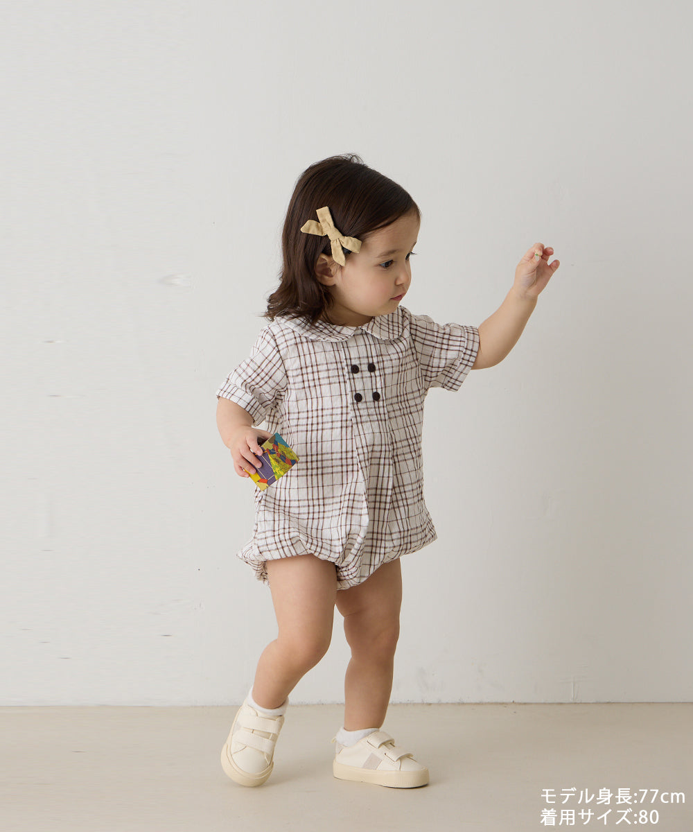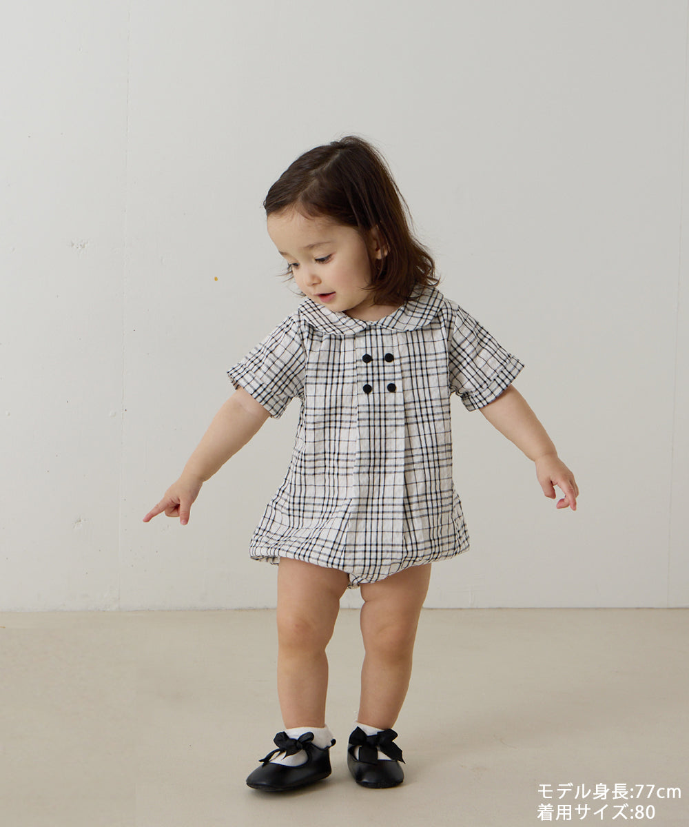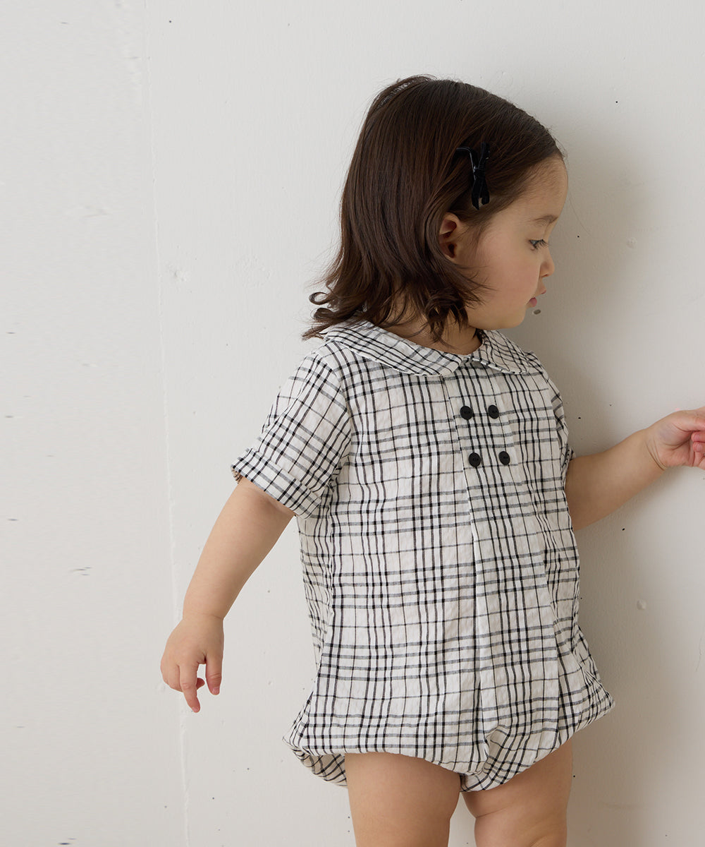 【リンク】ダブルボタンラウンドカラーチェックロンパース
