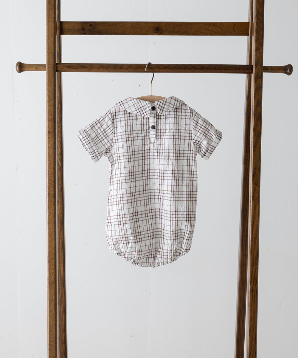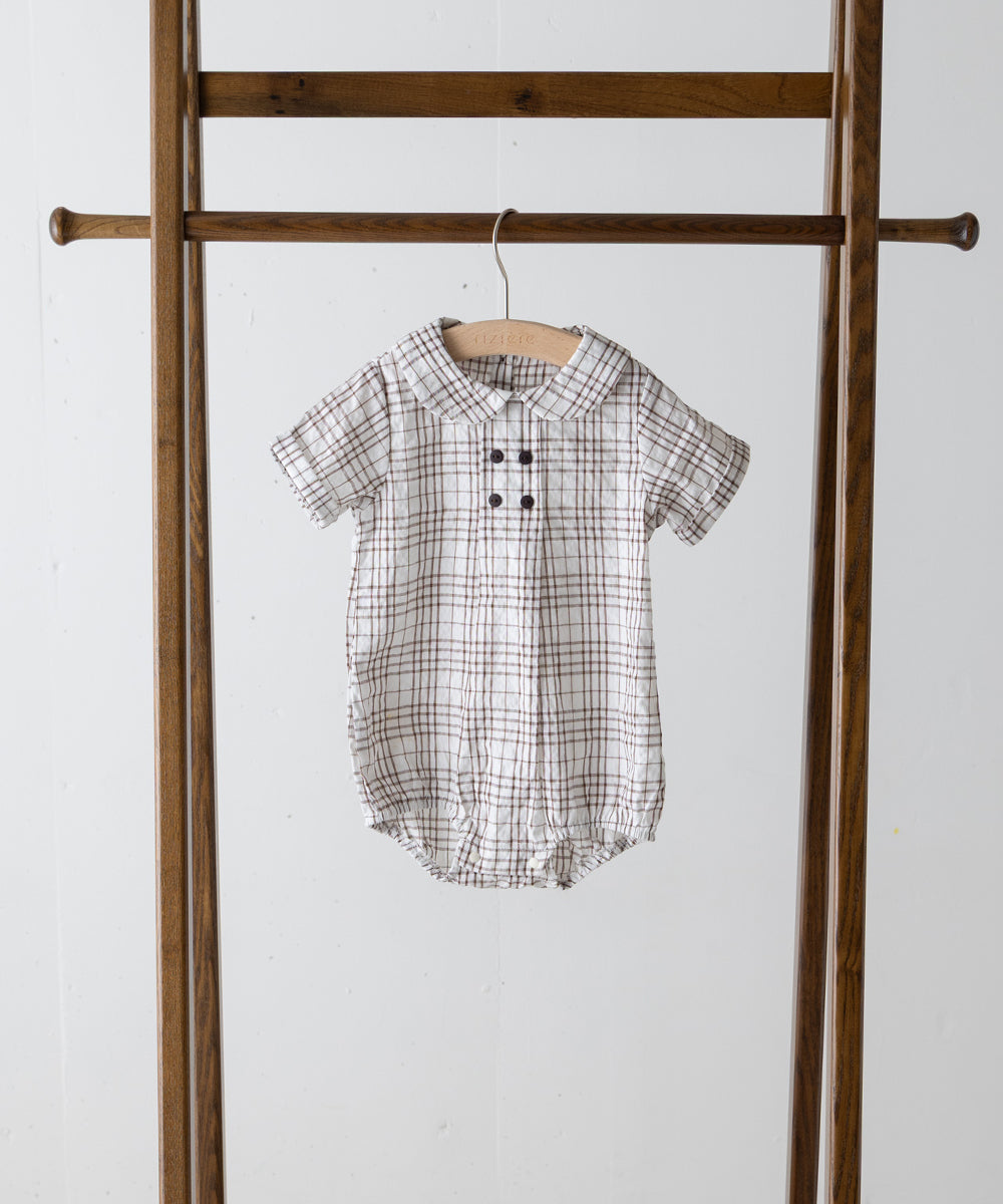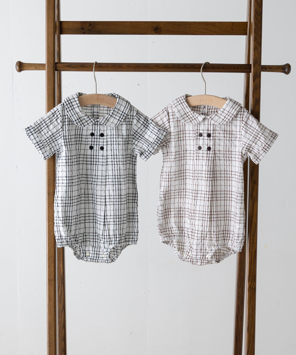【リンク】ダブルボタンラウンドカラーチェックロンパース
