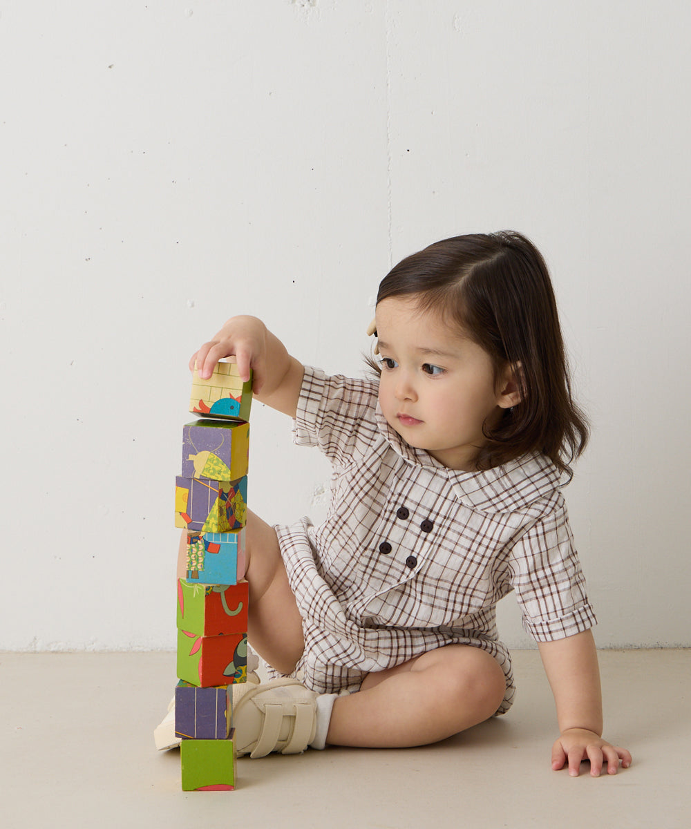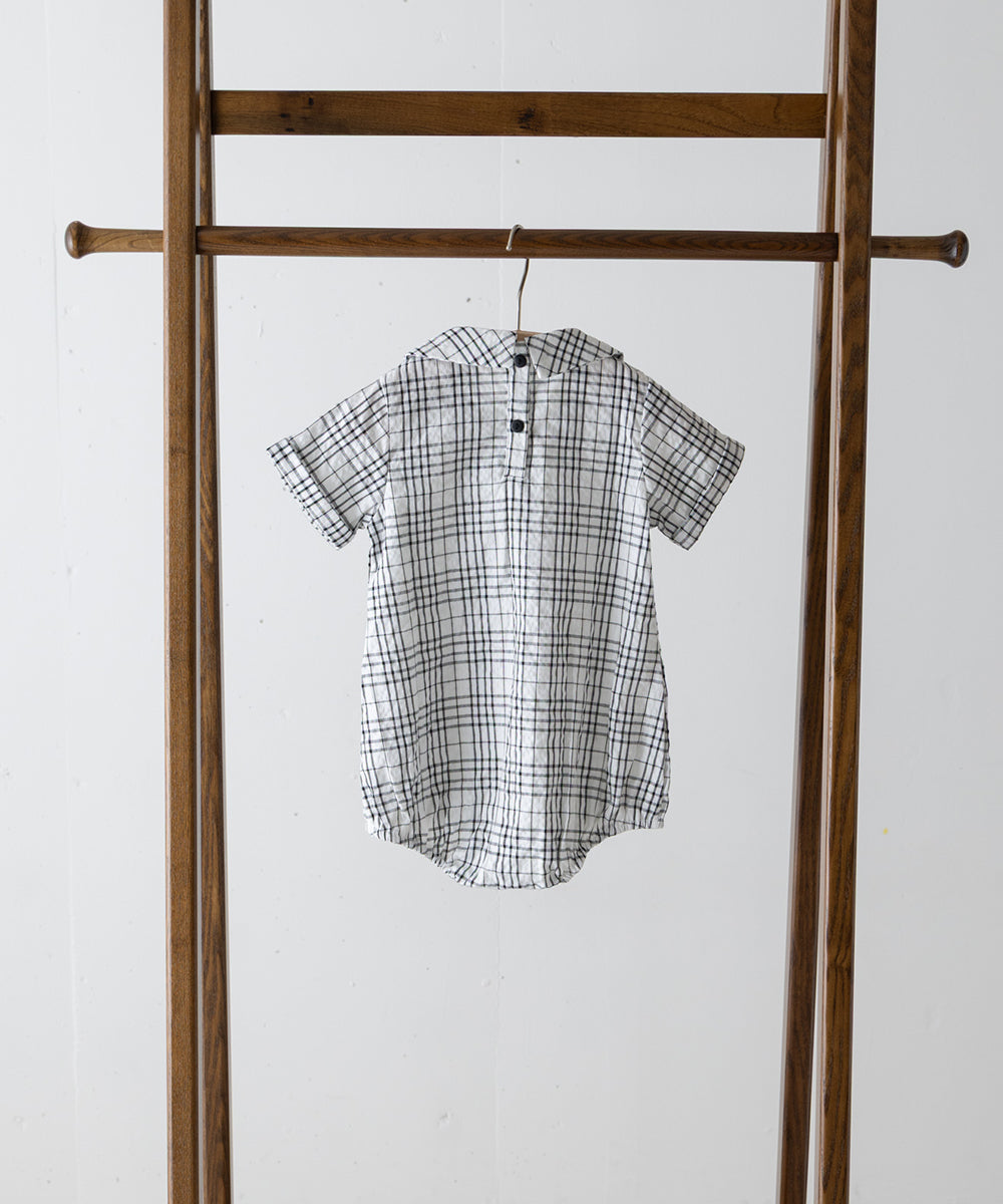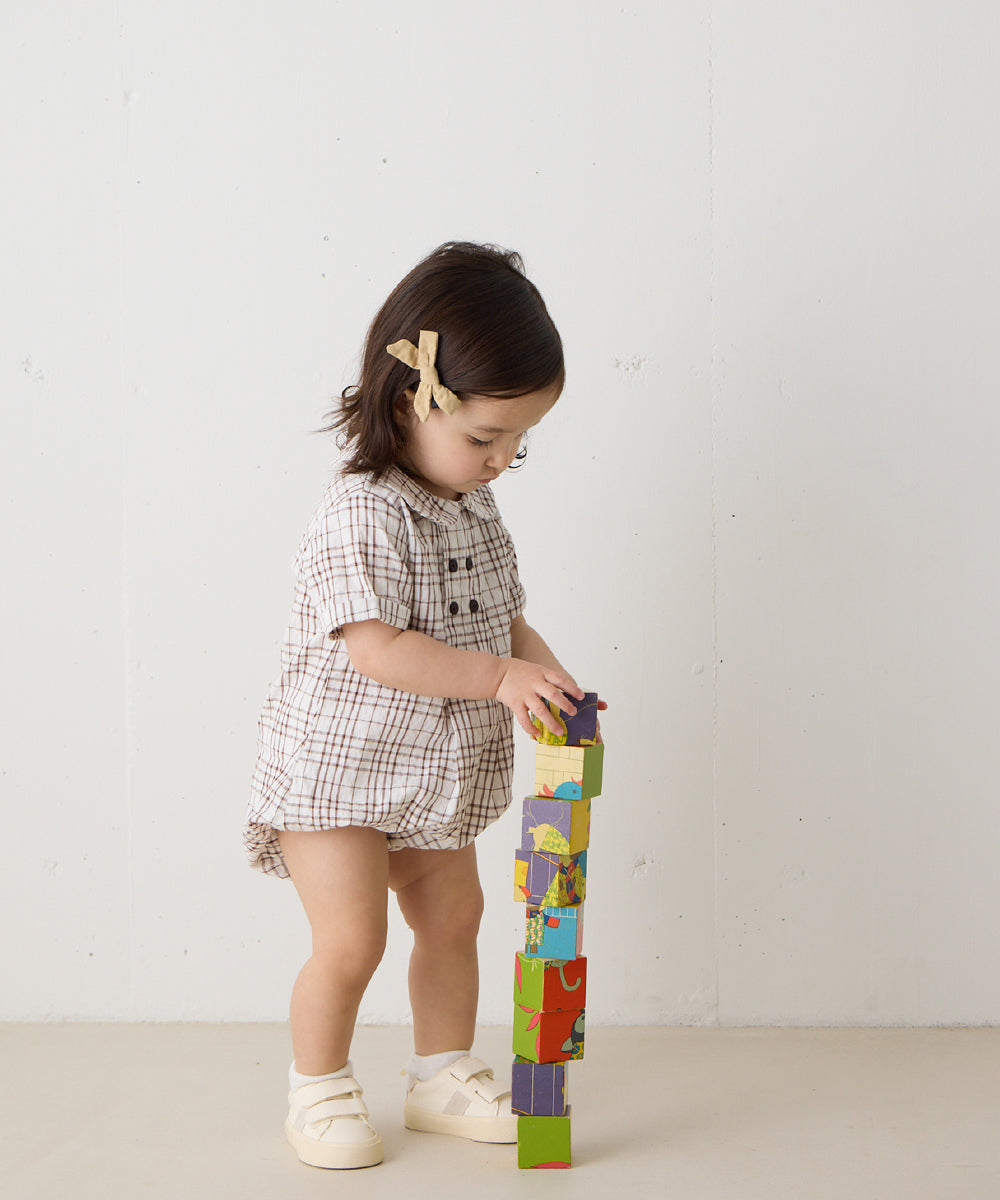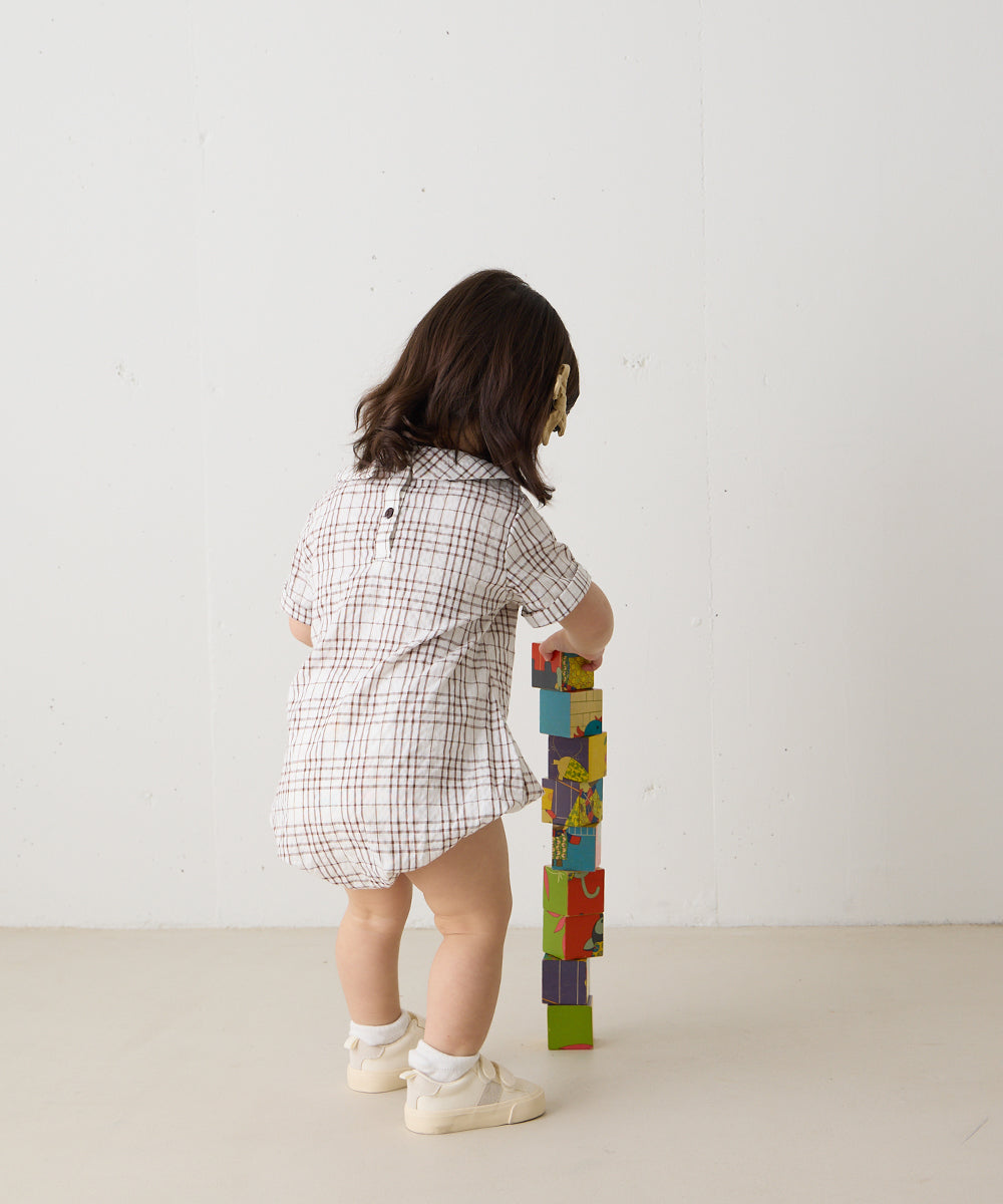 【リンク】ダブルボタンラウンドカラーチェックロンパース
