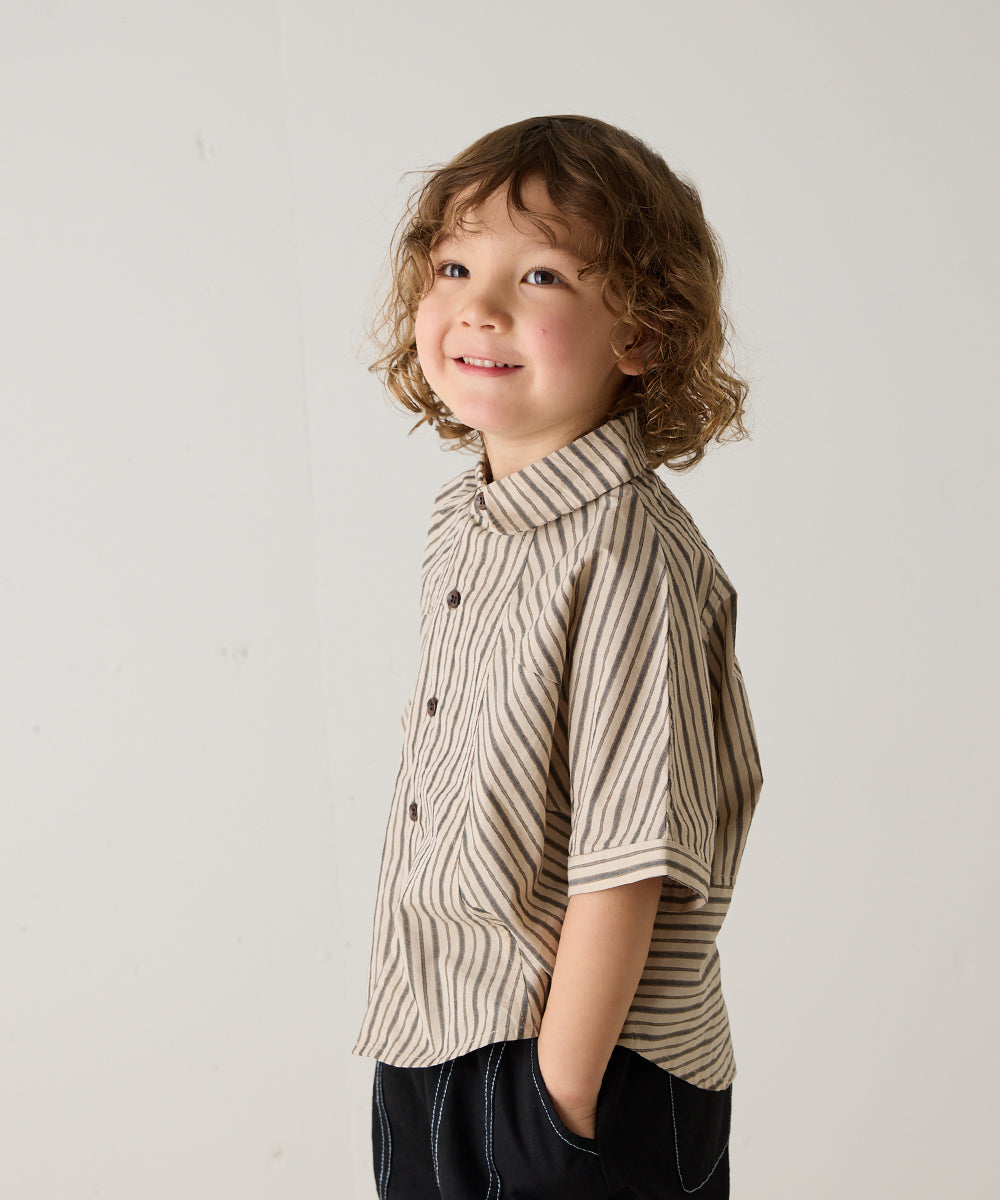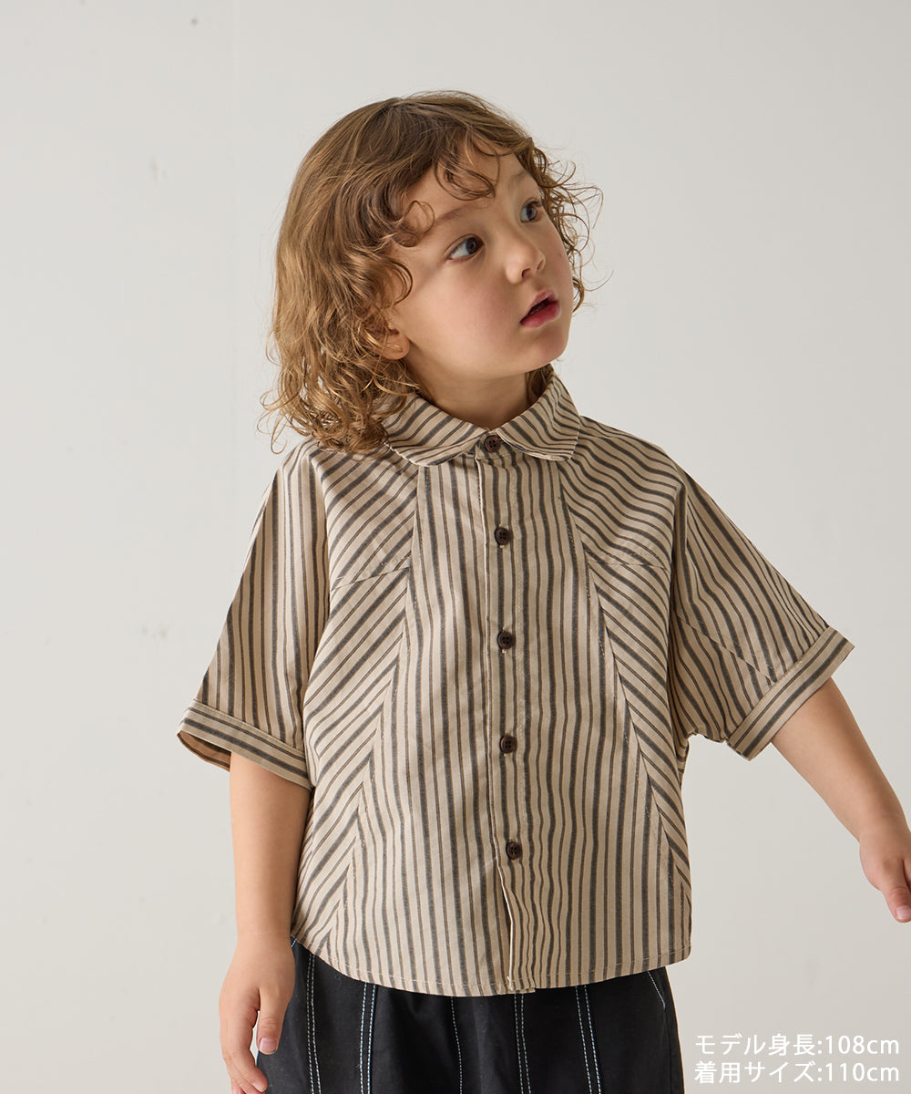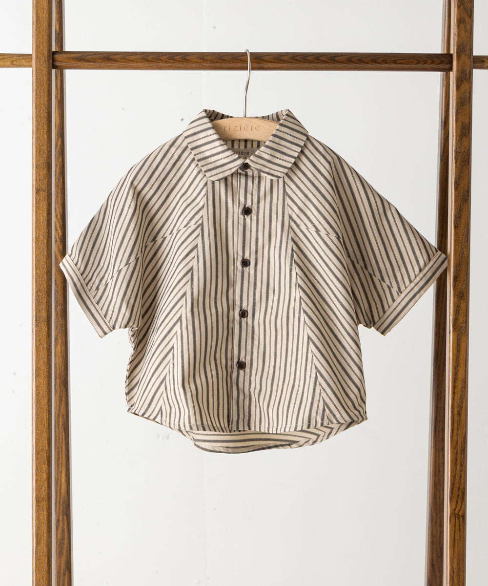 ストライプドルマン5分袖シャツ