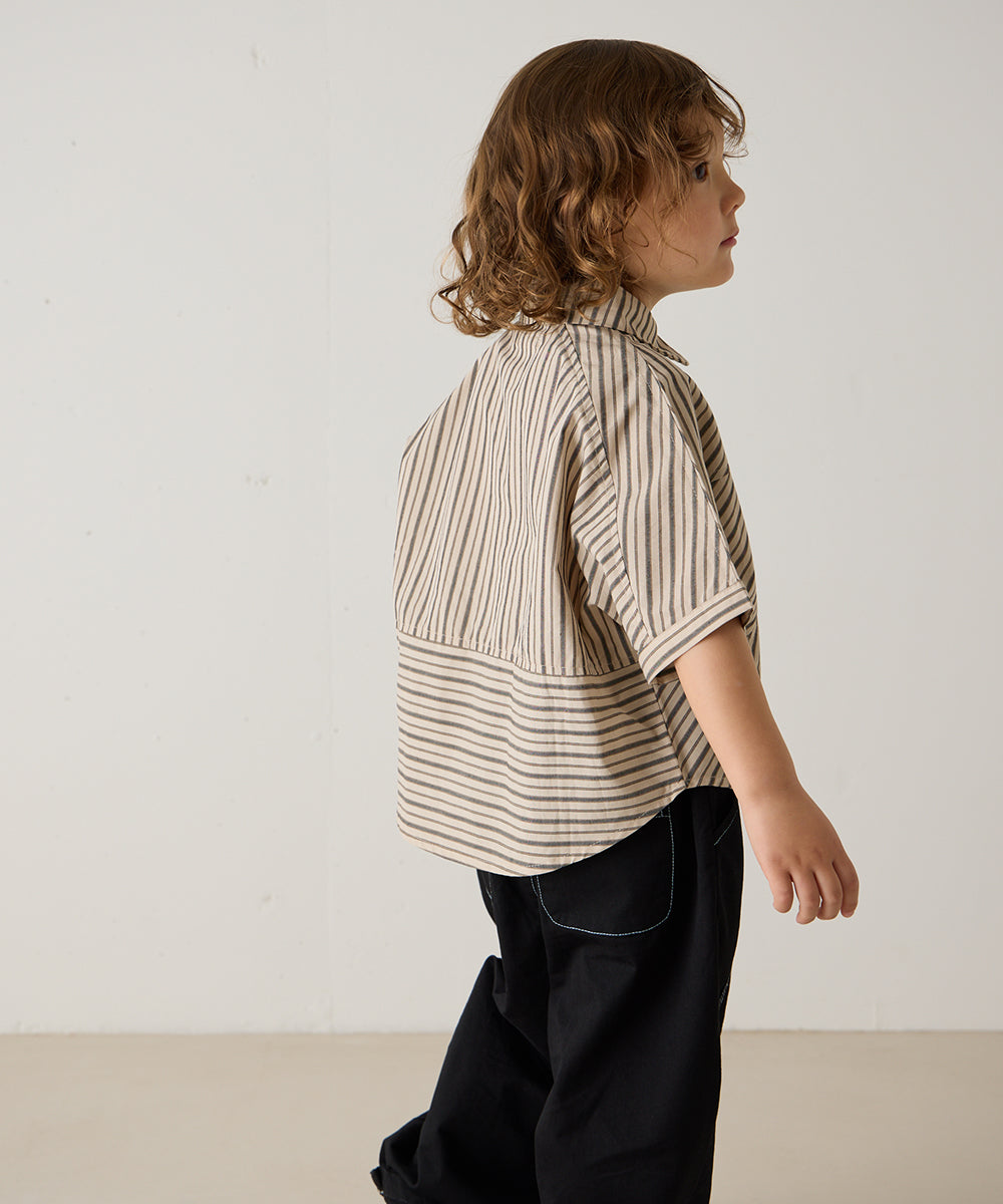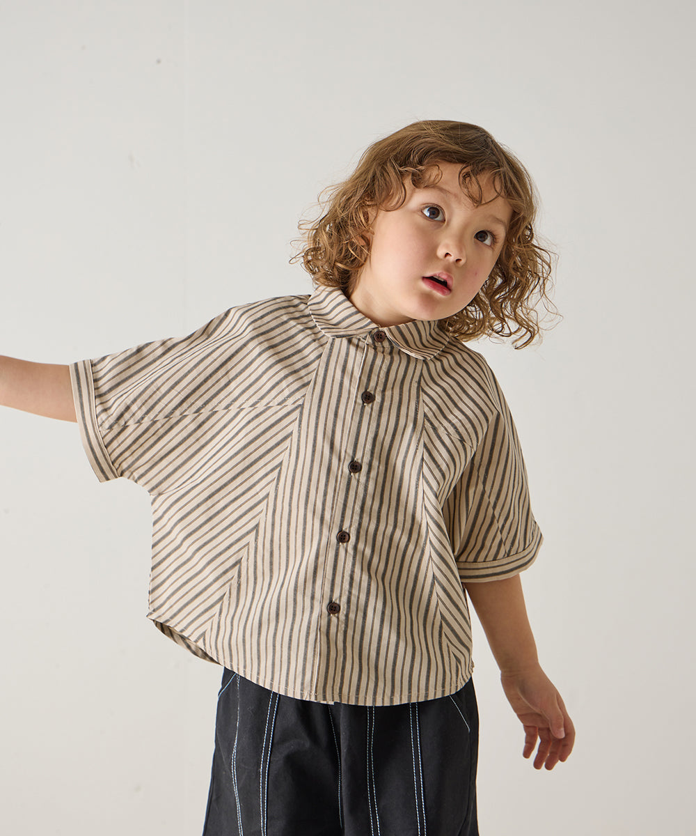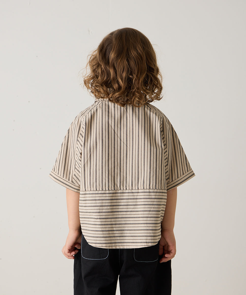 ストライプドルマン5分袖シャツ