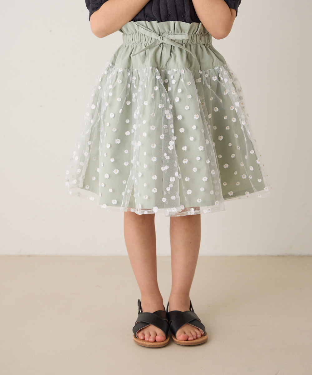 花柄チュール切り替えスカート