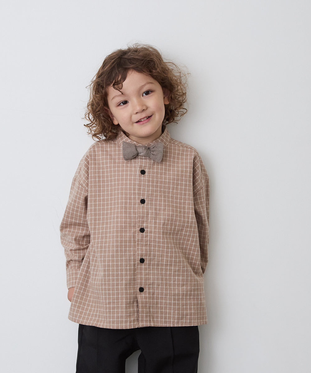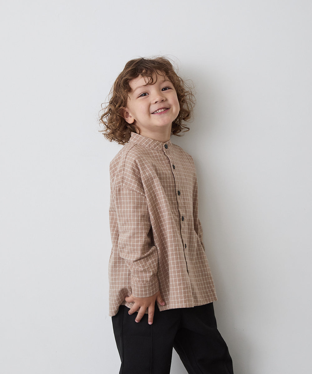 選べる2柄フランネルバンドカラーシャツ(ボタン取り外し対応)